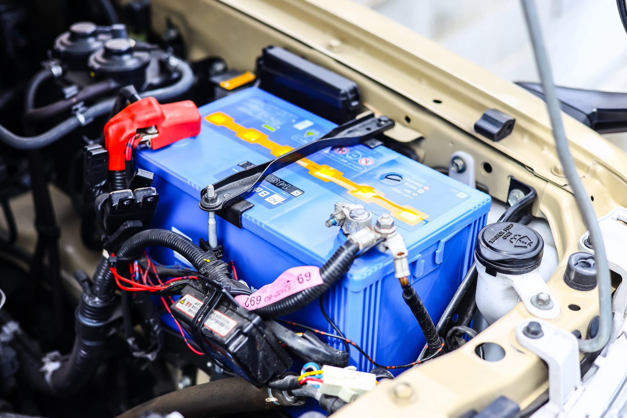 車のバッテリーとは、繰り返し充電ができる電池のことで、正式には「蓄電池(二次電池)」といいます。車のライトやウィンカー、エアコン、カーナビ、カーオーディオなど、電装系部品へ電気を供給するのがバッテリーの役割です。
