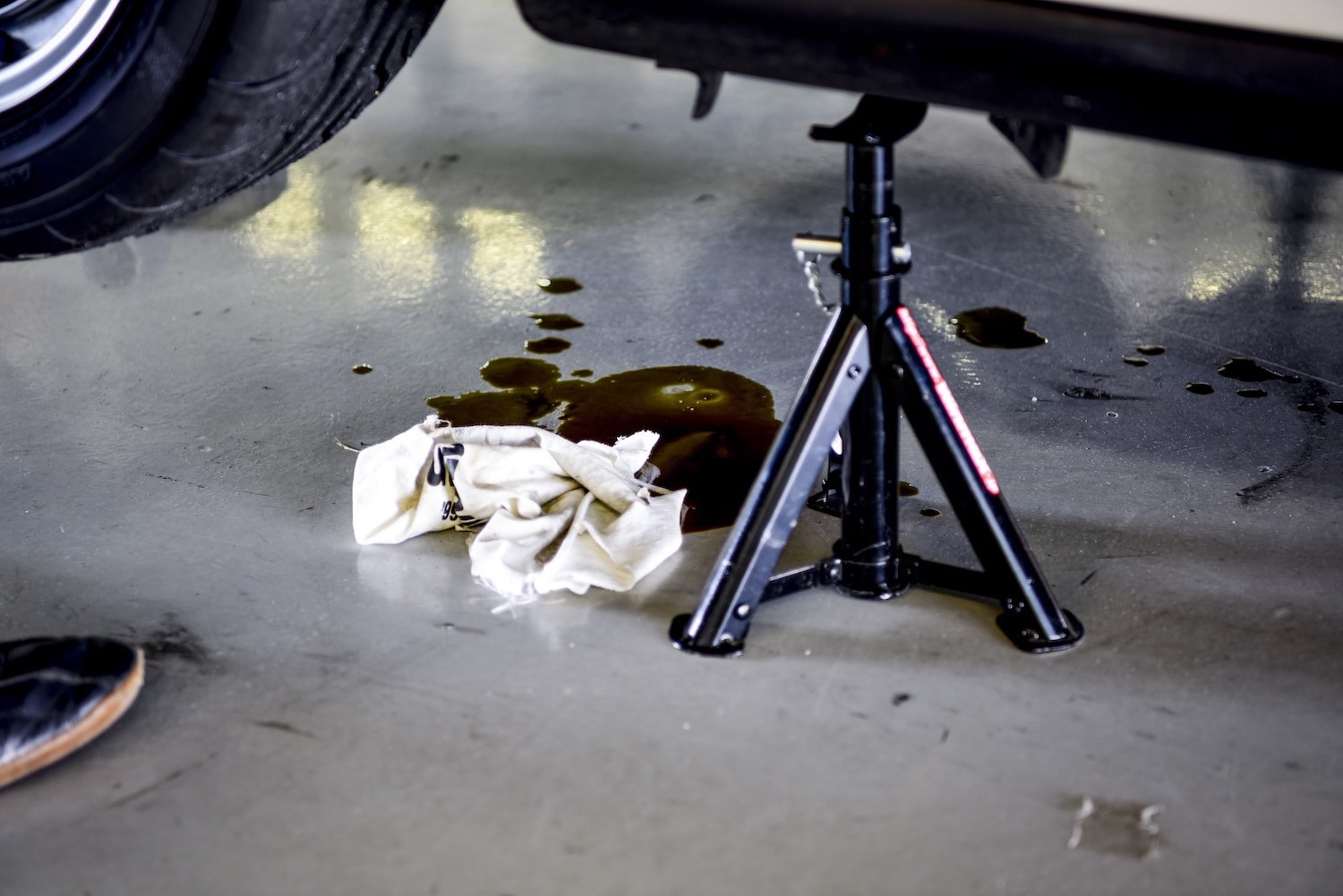 エンジンオイル漏れは、オイルパンとエンジンとの接合部分にあるガスケットやバルブシールの経年劣化のほか、ドレンボルトの不具合などが原因で起こります。エンジンオイルランプが点灯し、なおかつ車の下に黒っぽい粘り気のある液体が漏れていたら、エンジンオイル漏れの可能性が高いといえるでしょう。