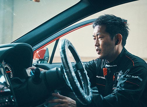 レースでのドライバーとしての経験があり、車の限界の挙動がわかっているからこそ言えることがあります。例えば急ブレーキ・急ハンドルでタイヤが滑ってしまい、事故につながりかける瞬間というのは普段であれば経験しないことだと思います。しかしこれはレースでは起こり得ることで、「こうなったら危ない」という状況を知っているからこそ実際にお客様が危なくなる前に適切なアドバイスができるよう心がけています。