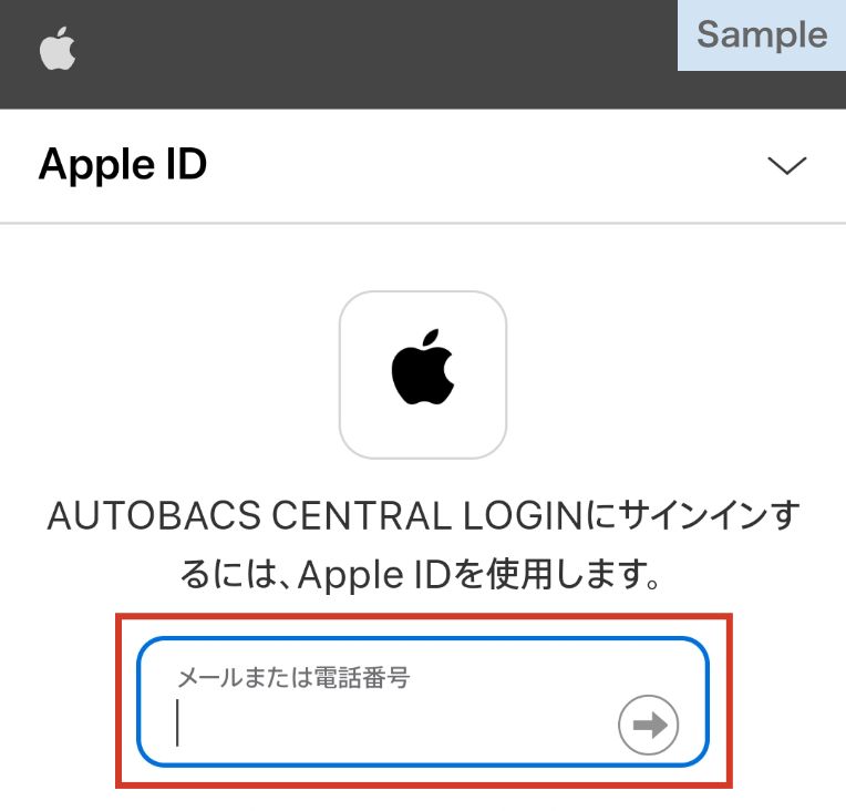 Apple IDログイン画面で、Apple ID・パスワードを入力し、[→]ボタンを選択します。