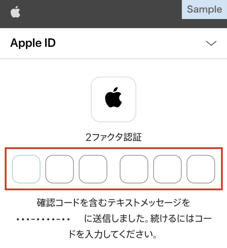 Apple IDにご登録の電話番号へ、SMSが送信されます。SMSに記載の認証コードを入力します。