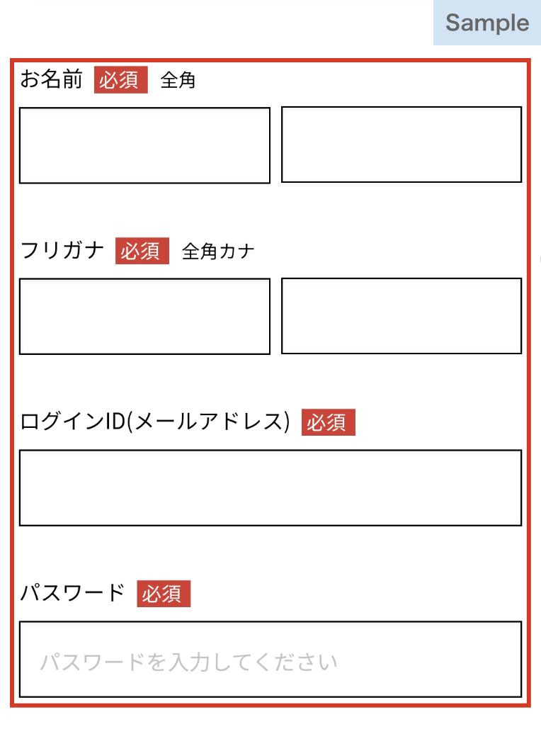 お名前など必須項目を入力