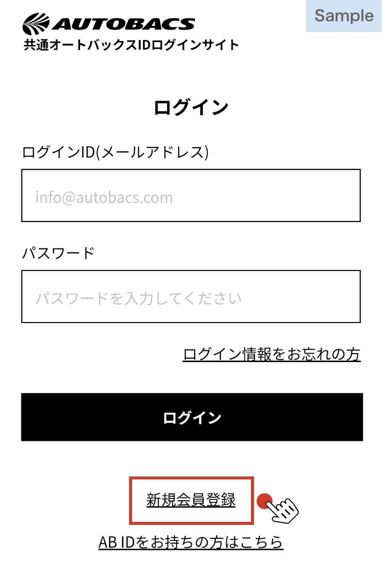 共通オートバックスIDログインサイトが表示されたら、[新規会員登録]を選択します。