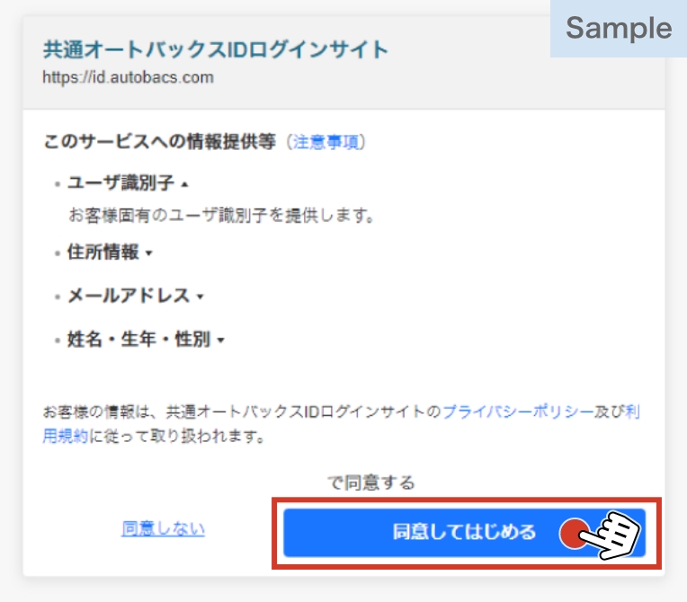 内容を確認し、[同意してはじめる]ボタンを選択します。