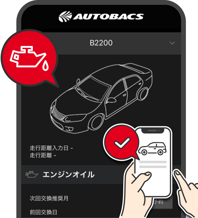 メンテナンスや購入履歴を自動で反映 。愛車を手間なく管理できます。次回メンテナンス時期のお知らせが通知で届きます。