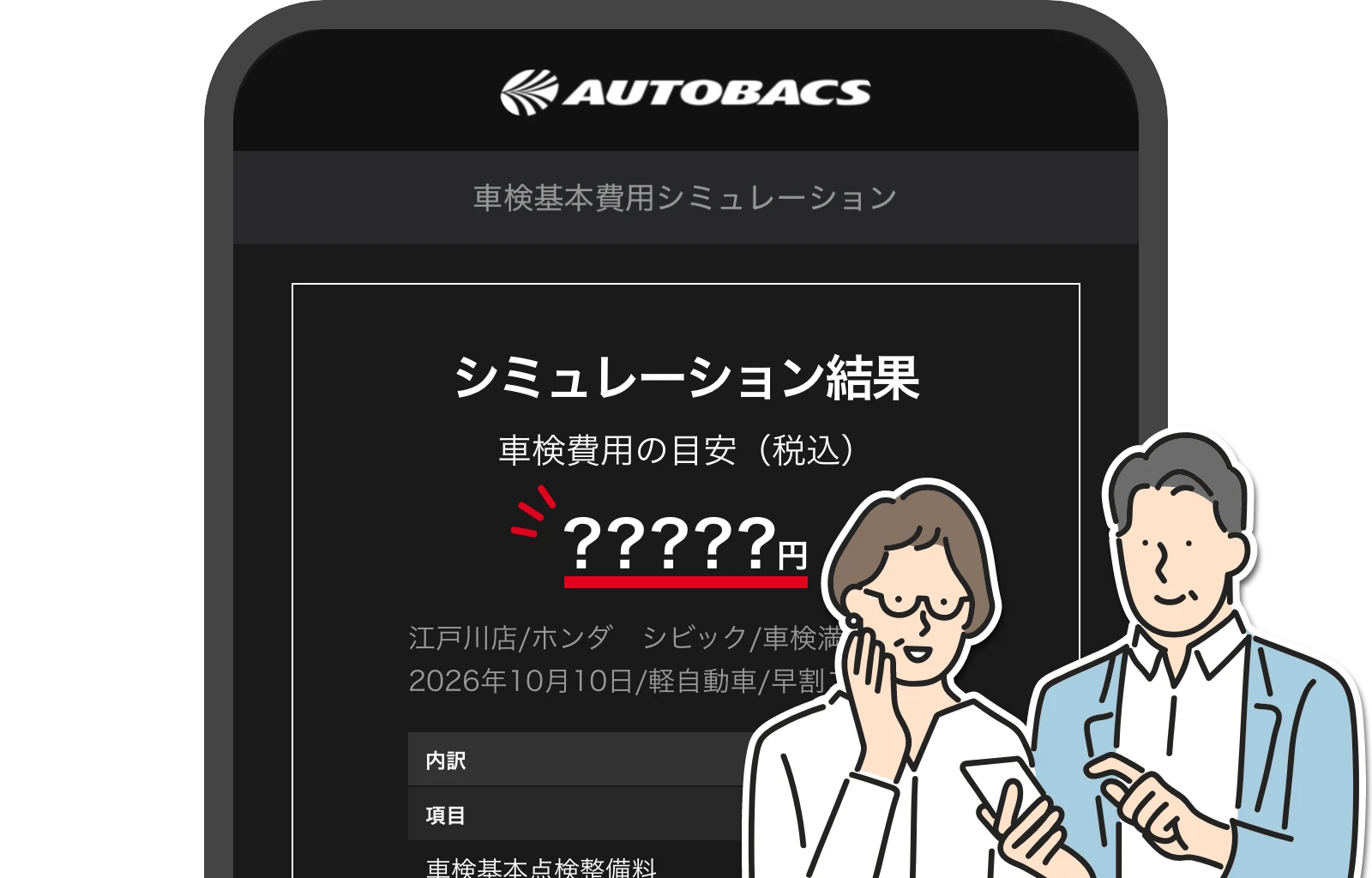 車検証を登録すると、車検基本費用をカンタンにシミュレーションできます。