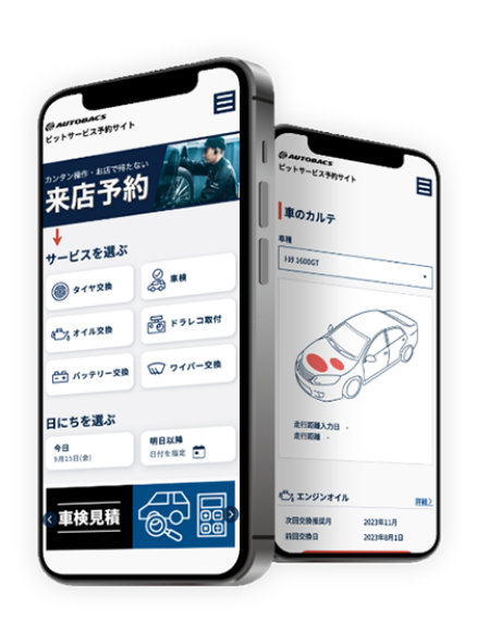車検や車検見積もりのご予約は、オートバックス公式アプリ、WEB、またはお電話で承っております。見積もりのみでも喜んで承りますので、お気軽にご相談ください。アプリをご利用いただくと、よりスムーズにご予約が可能です。